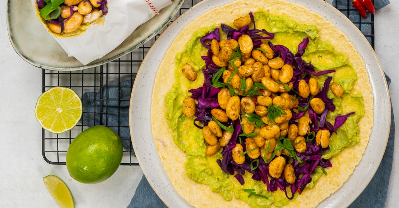 Тортилата се затопля във фурната или в загрят тиган без олио за около 30 секунди. Намазва се с пасирано авокадо и отгоре се слага от боба и зелето. Перата на зеления лук се нарязват на ситно и се разпределят отгоре. Овкусява се със сок от лайм, тортилите се навиват на руло и се сервират.