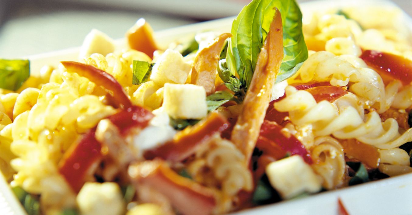 Фусилите със сметановата смес се пресипват в намаслена тавичка и се поръсват с овкусените трохи хляб. Пече се в предварително загрята до 220 градуса фурна до зачервяване.