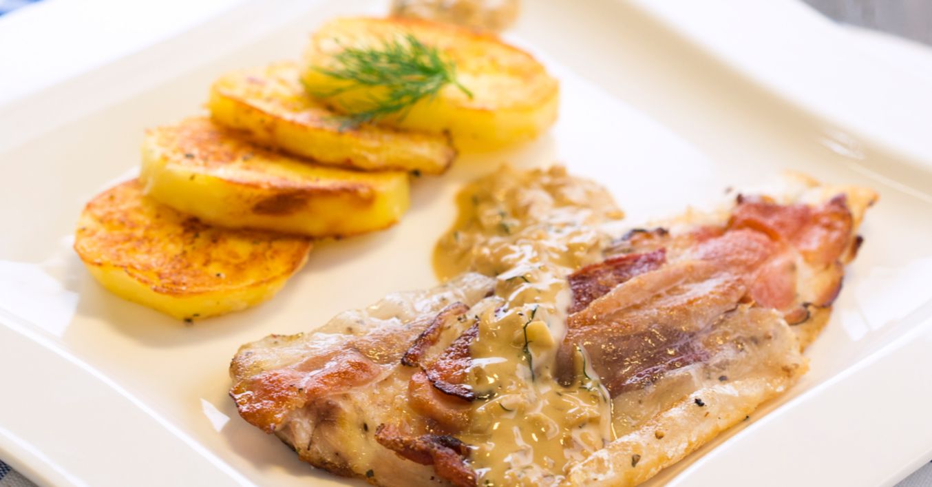 Филетата от ципура се измиват и подсушават върху кухненска хартия. Овкусяват се със сол и счукан пипер меланж. Върху всяко филе се поставят по две ленти бекон и се захващат с клечки за зъби.