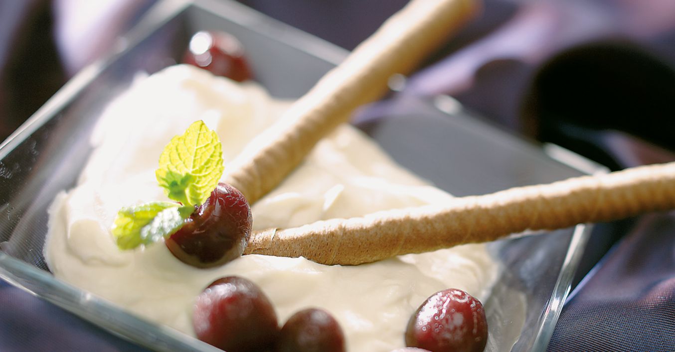 На дъното на подходящи чаши се слагат по 2–3 череши, покриват се с крем, отгоре отново се нареждат череши и се покриват с останалия крем.
