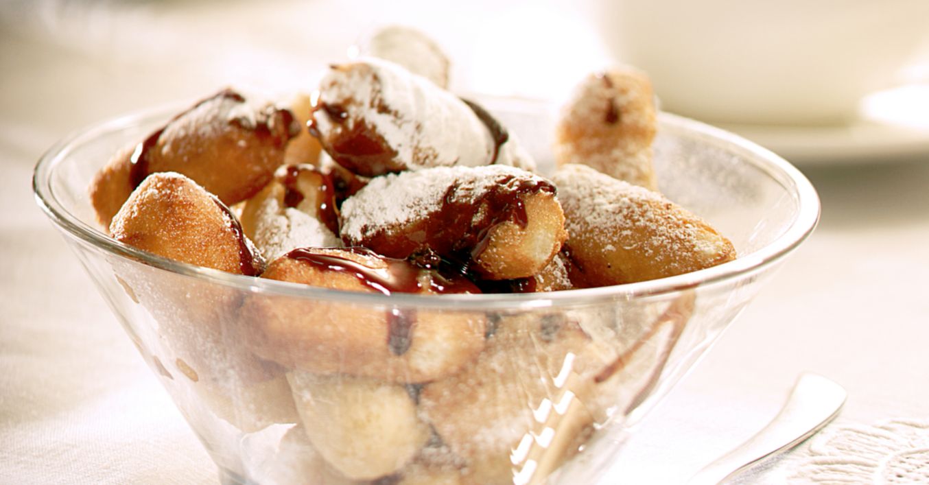 Сгорещява се олио за пържене. С помощта на супена лъжица от сместа се оформят топчета, които се пускат в него за около 2–3 минути, докато станат златисти. Изваждат се и се поръсват с пудрата захар.