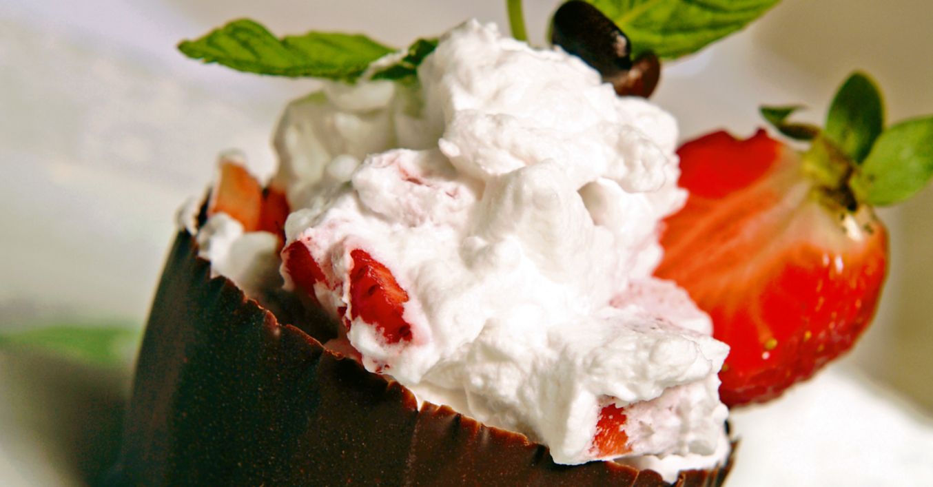 Шоколадова кошничка с пресни ягоди и крем Маскарпоне