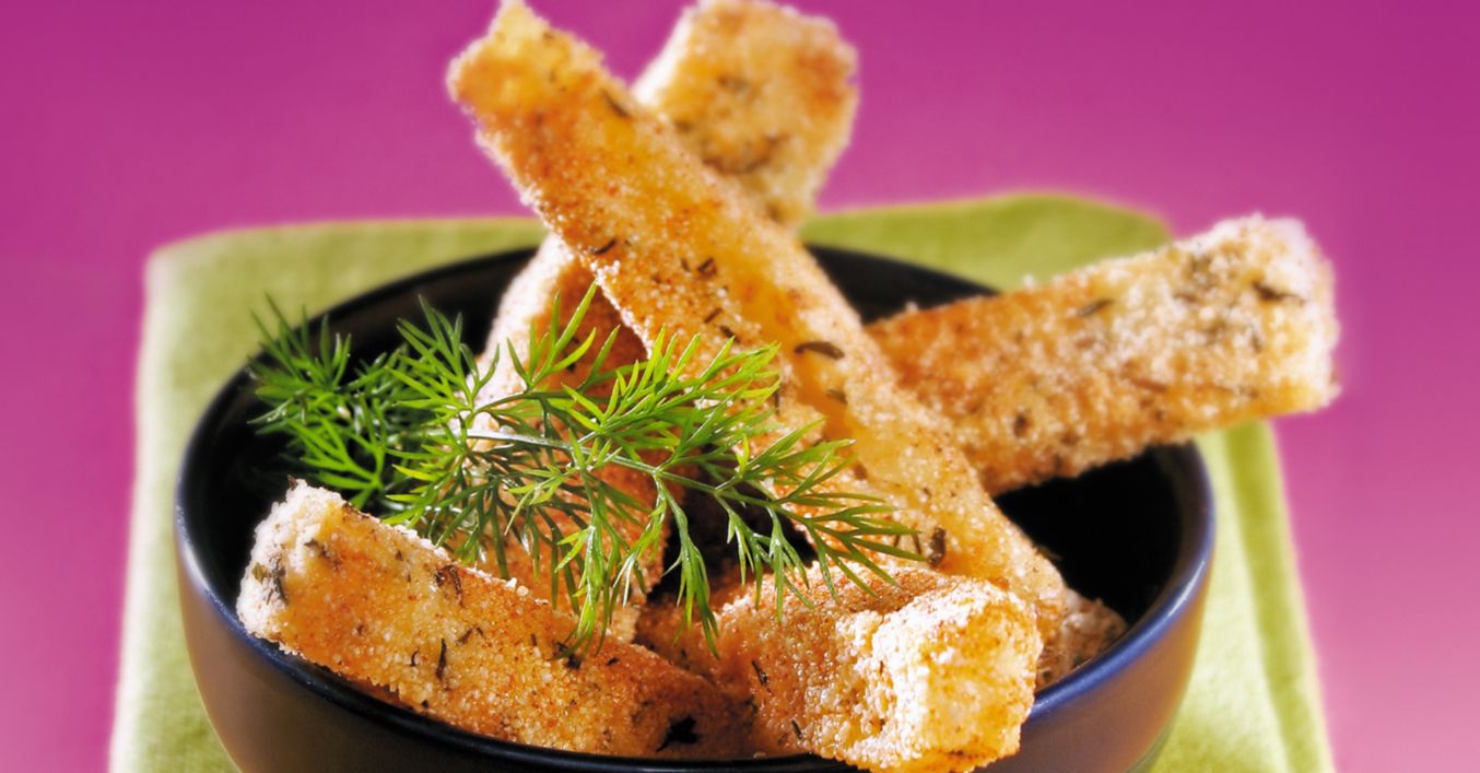Може да нарежете филийките кашкавал на ивички с големината на един пръст. Така ще получите чудесни панирани „пръстчета”.