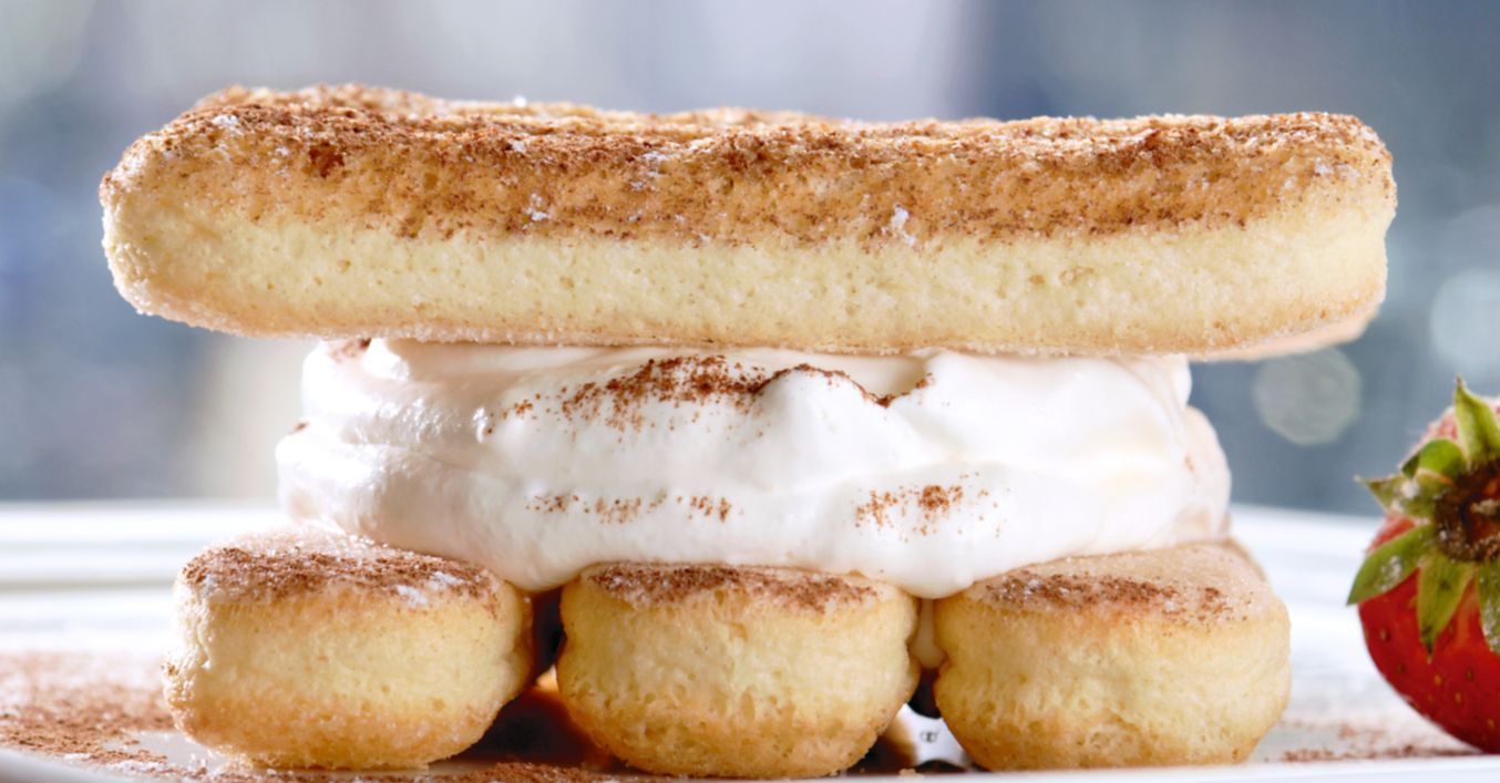 В чиния се слага ред от бишкотите, върху тях се нанася от крема с Маскарпоне и отгоре се подреждат отново напоени бишкоти. Поръсва се с какаото и се декорира с ягода. За оптимален резултат е желателно да престои 1 денонощие в хладилник.