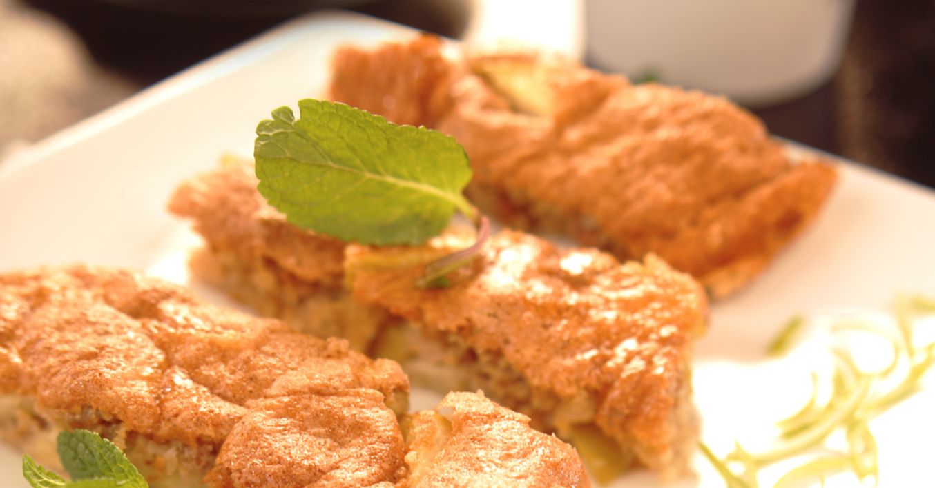 По желание сладкишът се поръсва с пудра захар и се украсява с листчета мента.