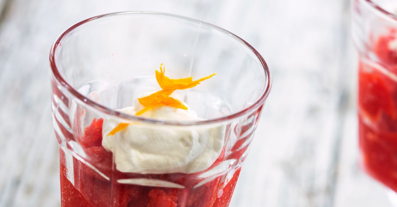 Сорбето се поднася със сметаната и настърганата портокалова кора.
